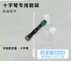 在现阶段中,很多玩家已经开始了解枪口的作用,从原来的‘消音党’逐渐转变成现今的‘补偿党’,越来越重视减少后坐力的重要性。 但消音器一直是新手的最爱,消音消焰什么的在远程点人最爽了!还能减少被其他玩家发现的概率,这样的武器是最适合新手的。 但是好的东西刷新率总是低下,这就要看你脸黑不黑了。 5:十字弩专用箭袋