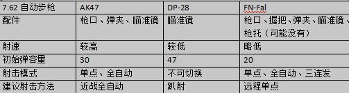 子弹口径:由于这把枪使用7.62毫米子弹,所以伤害应该和目前的AK一样,比5.56毫米的子弹多5点基础伤害。 模式:单发、全自动、三连发(对,它也会和M16A4一样,具备三连发的模式) 河马来给大家分析一下它和现在的7.62毫米子弹步枪的对比分析(假设条件下)