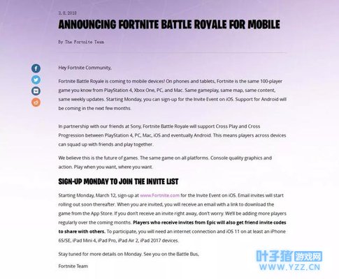 这种差别对待的态度,让人不禁怀疑蓝洞才是腾讯的子公司,至于EPIC里腾讯50%的股权则是全打了水漂。 如果说腾讯是担心《堡垒之夜》会对《绝地求生》造成冲击从而雪藏,那就完全没必要推出国服客户端,架设国内服务器,现在这种模棱两可的做法着实让人难以理解。 不过在国内市场打不开的情况下,EPIC并没有停下国外扩张的脚步。 3月9日,EPIC宣布将要推出《堡垒之夜》手游版,在昨天已经开始了iOS端的测试。最重要的是, 《堡垒之夜》手游并非一款单独的游戏,而是会跟PC、PS4、Mac多平台数据互通,让玩家可以进行跨平台对战。