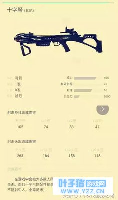 此外,拿着平底锅对着敌人的脑袋来那么一下子,就算戴着三级头也分分钟给你爆掉信不信! 什么二级头三级头,在我至高神器平底锅面前只不过是一下子的事情。 NO.2 一击破防——十字弩 无头盔情况下,十字弩可以打出263的伤害。对于一级头和三级头,十字弩都可以一箭致命。