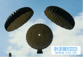 值得一提的是这个空投箱长得和普通的空投箱不一样,有三个降落伞“护驾”,从空中一跃而下十分引人注目。