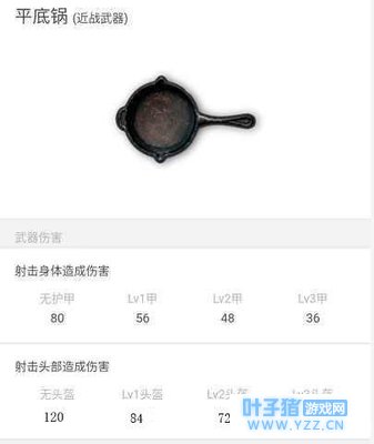 平底锅在绝地求生大逃杀当中属于一个非常有趣的设定,说是神器也不为过。不论是高手还是低端玩家,看到平底锅都必定是会捡起装备上,毕竟平底锅功能多多。 其一、平底锅是绝地求生4种近战武器种伤害最高的,单次伤害比AKM高,属于肉搏神器。 绝地求生近战武器一共有4种,分别是撬棍、镰刀、弯刀以及平底锅,从下图详细数据对比我们可以看出平底锅相较于其他3个近战武器伤害要高上20点,因此单就伤害量来说4种近战武器必定是平底锅优先。