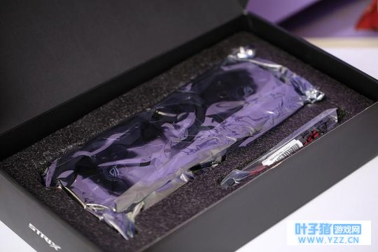 拆开包装,映入眼帘的就是高贵的阿苏斯,上方是说明书,这个基本不用看了,下方则是华硕ROG STRIX GTX1080TI-O11G-GAMING显卡了,值得一提的是,显卡还配了一根供电转接线。