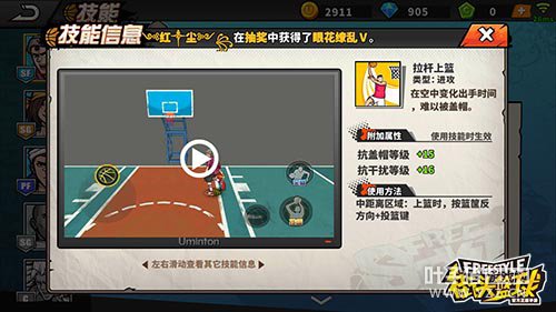 这个技能主要给小飞侠一个突破能力,并没有太高的需求,当然我们也可以换成横向突破或者后撤突破,主要看玩家们对那个突破技能更加熟练了。 栏杆上篮:在空中变化出手时间难以被盖帽,抗盖帽等级+15,抗干扰等级+16,中距离区域上篮时按篮筐反方向键+投篮键生效。