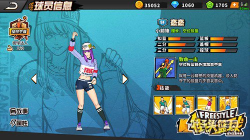 在队友的选择上,除了中锋球员要保证抢板的成功率外,在外线的球员也要有过硬的得分能力,有天赋技能加成的球员自然是最优先的选择。 因此,这个队伍搭配的球员选择有:凯特琳、李心木(恋恋) 凯特琳: 作为刚刚加入到游戏中的中锋球员,凯特琳的篮下得分能力非常出色,并且还有着不错的篮板能力,抢板的时候成功率非常可观。虽然与老牌中锋皇叔相比稍显逊色,但是对于队伍整体的得分能力来说有非常不错的提升,较高的干扰属性也能够有效的降低内线球员的得分能力。