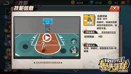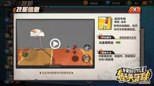 一个后撤突破可以轻轻松松的到达三分线,投一个漂亮的三分球。不仅让移动更迅速,而且简化了操作。除此之外,后撤突破还可以有效的降低被盖帽的风险。 技能选择三 后仰中投