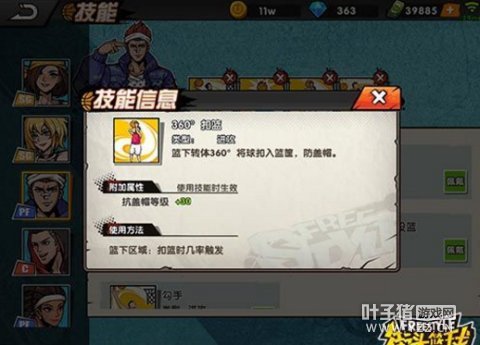 大风车扣篮:可以大幅减少被盖帽的几率,增加抗盖帽等级,对于PF球员是很好的选择。