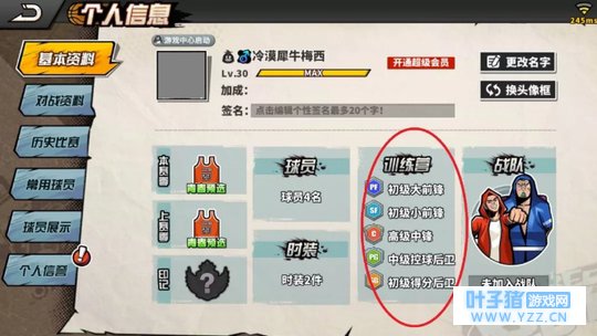 训练重置卡:训练重置卡可对当前对应职业的训练进行重置归零操作(当重置后,当前职业对应的所有球员因为训练增加的属性会相应减少)。使用重置卡会返还训练所消耗的大部分训练点,训练重置卡可在商城中使用点券购买。 进阶完成后,最新的训练等级会在各个界面进行显示,其他玩家也可在您的个人信息中进行查看。
