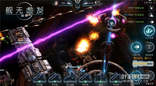 核心玩法上,《舰无虚发:暗星》非常注重策略的运用和操作的体验,而不是传统的“突突突”式开舰船玩法。在线匹配完成后,玩家分属地图两侧,各自指挥主舰、护卫舰和作战单位进行作战,舰船能量随时间流逝攀升,交战越来越激烈。玩家共有三个种族可选,每个种族又有十四种可用护卫舰和十六种可用作战单位,策略深度惊人。玩家能够自由配置自己的舰队,通过收集能量、生产兵种、使用技能来击毁对方的主舰,从而获得胜利。 钢铁巨舰 IMAX级史诗星战 如果说全球匹配实现了功能上的突破,那么游戏在画面上的精雕细琢则展现了足够媲美端游的影音表现。闪耀的明星、划过的陨石,再搭配上战火纷飞的场面,以及真实的爆炸特效,能够带来好莱坞电影般的冲击力。每个主舰、护卫舰及作战单位都经过精心设计,拥有完整而独特的各种动效。