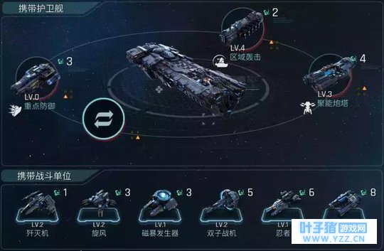 携带单位数量的减少意味着策略性降低,但《舰无虚发》却巧妙地使用护卫舰设定弥补。局内供玩家携带4种护卫舰,护卫舰可简单理解为主动/被动技能。
