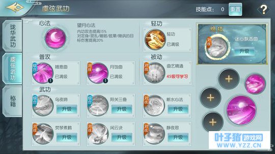 两种流派的技能完全不同,例如侠义君选择的辅助门派峨眉,第一流派“珑华”以剑为武器,技能以治疗和增益buff为主。第二流派“虞弦”武器则变成了琴,玩家可以在远程进行攻击和控制。 两个流派各有侧重,玩家可以自由组合技能,应对不同类型和阵容的战斗。