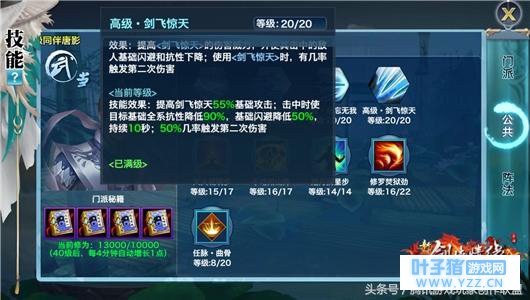 《新剑侠情缘手游》二次伤害 武当剑飞惊天技能揭秘