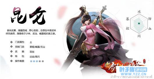 昆仑优劣分析 昆仑门派定位为“近战,高闪,控制”四维成长方面,体质成长3,敏捷成长4,力量成长1,灵巧成长2。技能方面,昆仑自身有位移技能是个灵活的门派,并且有强力的控制,而且在当前版本昆仑的生存能力也是比较强的。在作战的时候可以打头阵,先控制住敌人,再利用仙人指路技能多次输出以及进行位移。在昆仑的主动攻击技能只有混沌剑阵不带有眩晕效果,其余三个技能皆带有眩晕效果,并且其中啸风三连击配合秘籍还会有几率拉回敌方;在辅助被动技能中,有着受到伤害生成护盾,还有提高自身吸血的技能。