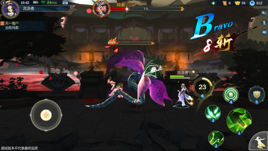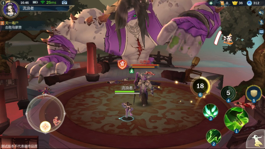 最后门派的一个叫阿亮的小师弟被BOSS魔化,这个时候需要用技能霹雳吧啦的打一通,等到一半血的时候,触发剧情,被魔化的小师弟,也就是身后这个巨无霸,一只大手拍下来,打死了BOSS?还是主角?