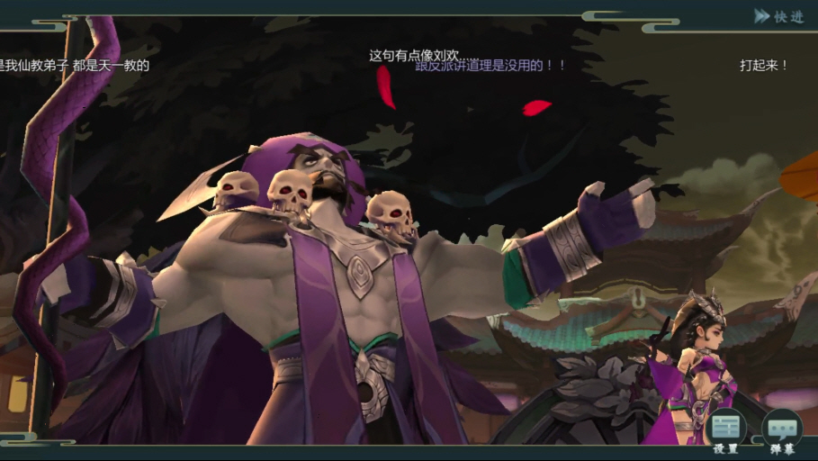 然后就是整个游戏的剧情开始,门派之中被反派围攻,整个门派进行合力反攻,不过反派角色太厉害了,BOSS剧情出场,贯穿整个游戏,让大家看到这个游戏的最终目标就是击杀这个大BOSS。