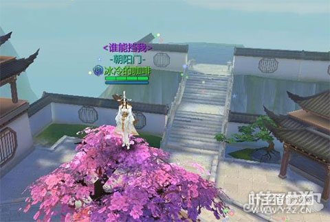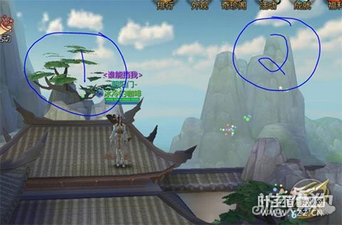 这个点有点小麻烦,就从山峰之颠3对面(樱花树方向)的房子上起跳,先跳到对面1点的树上,在从树上跳至2点。