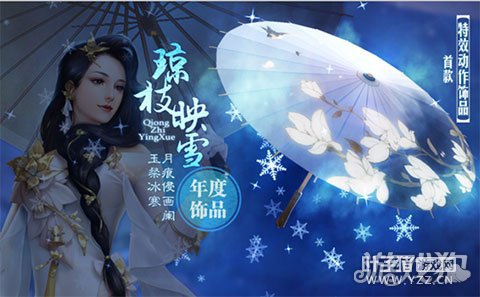 首款动作特效饰品-【琼枝映雪】,可在福瑞聚宝活动中通过开启【上品福瑞宝匣】获得或使用【琳琅玉】兑换。 每日阅历值达400可免费获得【福瑞宝匣】1个,有一定几率开出以上道具。