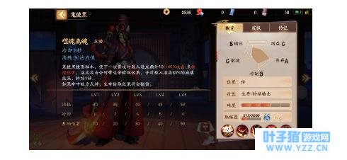 鬼使黑的这个被动成功叠加4层后,增加20%攻击和速度,并且每次攻击还会额外造成敌方最大生命的4%伤害。前期成功触发后,鬼使黑单A实力是非常恐怖的,所以对方前期要单撸不要怂,直接干。只要鬼使黑血量不比敌方式神血量低,普攻加技能很容易就可以带走敌人。 三技能:噬魂离魄 鬼使黑的三技能会吸血并且能提高伤害,这也使他的航续能力变得更加强大。不过要注意的是,鬼使黑使用噬魂离魄技能很容易A到兵,基本上都是使用三技能就会A到离鬼使黑最近的小兵,因此要攻击敌方式神时就要注意先把攻击目标选为式神,并靠近他,不然依旧要A到兵的。 大招:无常索命
