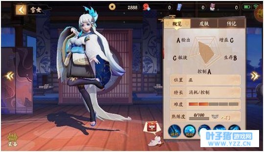 决战平安京式神界面 我想玩的雪女应该走那个位置?这个巫是指巫师吗?就是法术系定位?还有其他的那些该怎么判断?这种故弄玄虚的式神定位让我一脸懵逼,根本不知道游戏该如何进行;而当我好不容易进入式神个人预览界面后。