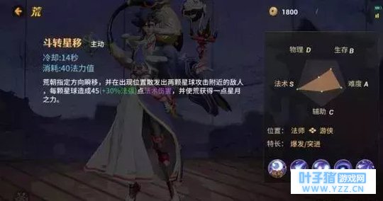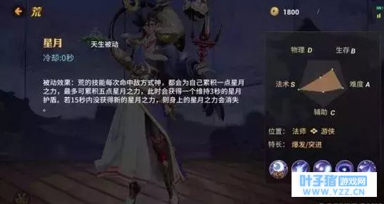荒背景 “神的制裁,终将落下”。 执掌星月力量的神秘男人,跨越天海长风的古老传说,挟裹着高天原的不可侵犯之威,降临决战平安京战场。 据传,荒是身负着神之使命的强大式神,神力的加持,让他成为当前战场上唯一一位拥有着位移技能的法师型式神,斗转星移,进退自如。 荒掌控星月之力,能够带你领略震撼人心的星辰幻境。当积累了足够的星月之力之后,荒便可发动终极技能【星月天罚】,开启终极星辰之境,在其中召唤天罚流行,对敌人造成毁灭性的范围打击;相反,若星月之力不足,天罚威力便大打折扣。让我们一起解读荒技能吧。 技能介绍与连招推荐 天生被动【星月】