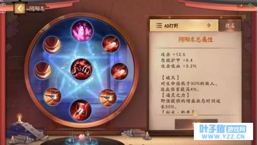 请输入图片描述 《决战平安京》没有像《王者荣耀》那样的符文系统,取而代之的是一套类似于LOL新天赋系统的“阴阳术”,只要玩家达到一定等级就可以全部解锁,而且解锁要求等级很低,基本上几天就能使用所有的“阴阳术”了,“阴阳术”的设定十分平衡,没有什么必带的阴阳术或者没人带的阴阳术,完全根据自己理解来搭配。另外,游戏的皮肤也没有任何属性加成,回归了MOBA游戏应有的样子,皮肤完全靠外观吸引玩家来购买,而且式神的觉醒皮肤只要熟练度达到一定程度,用金币解锁就可以用了。