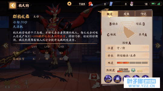 鸦天狗的技能就不一一介绍了,不过他的大招很有意思,可以连续攻击好几波,并且攻击范围大,可以消耗,也可以追击。 打法方面,前期猥琐,坦度起来起来之后主切对方c位。