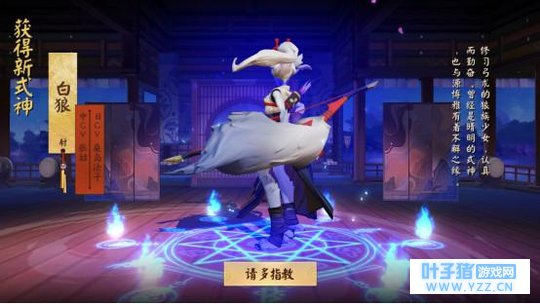 请输入图片描述 小编刚进入游戏,就获得了一个式神——白狼,值得一提的是网易在式神出场的方式和界面上做的功夫确实很深,一些小细节也让人感觉十分的有诚意,比如屏幕左方式神名字下面列出了中日声优的名字,右面则是简短而吸引人眼睛的式神介绍。不过最让人瞩目的还是式神出场的画面竟然是动态的!仿佛要从屏幕里走出来一样!
