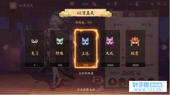 请输入图片描述 熟练度解锁皮肤 与其他游戏不同的是平安京中有熟练度解锁皮肤功能,熟练度分为见习、修炼、上达、大成、极意,当式神使用达到一定熟练度就可以用金币获得觉醒皮肤!不管你心不心动 我是心动了!就算再菜,我也要买美美哒的皮肤!何况又不花rmb!
