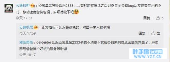 平安京官方微博下玩家对于卡顿的不满 手游时代,项目的研发期和推广期不断压缩,更多快餐的产品不断充斥在玩家的视线,这在网易游戏这种立项相对低门槛的公司中更为常见;但手游时代并不意味着放松对产品品质和玩家体验的追求,只有深入思考过的内容,才会在玩家的心中,战局一席之地。这是《决战,平安京》和宣扬"游戏热爱者"的网易游戏,在市场浪潮中更该深入思索的。 |