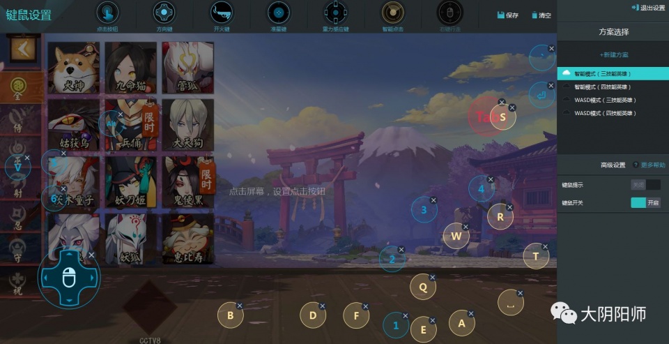 这样设置基本跟电脑MOBA游戏差不多了,攻击式神是空格键,就是要适应下移动的感觉
