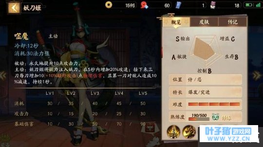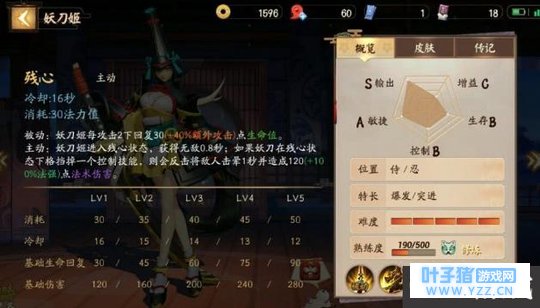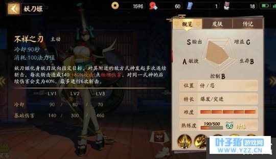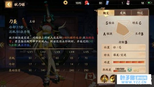 从图中可以看出妖刀是走爆发流突进切脆皮的刺客型式神。 接下来我来详细介绍一下技能。