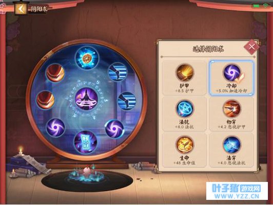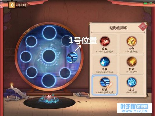 请输入图片描述 首先我们需要先了解《决战!平安京》的阴阳术搭配界面。界面的左侧位置,一共有九个圆圈可以放置阴阳术。左右两侧较小的圆圈放置基础属性阴阳术,中间一列较大的圆圈放置被动技能阴阳术。每一个圆圈内都有六种选择,玩家可以自由选择合适自己的阴阳术装备使用。 了解完阴阳术的搭配界面后,我们再来了解一下1号位置的六个基础属性阴阳术。六个基础属性每两个相同,有三种分类选择。 移速是任何式神都需要的属性,冷却是新手滚技能必备的最佳属性,而物攻(物穿)只要注意式神的输出方式是物理输出还是AP法术输出即可。如此搭配适用性非常的广,可以助新手快速上手基础阴阳术。