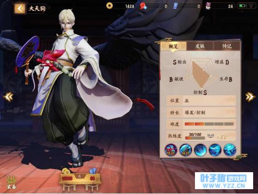 请输入图片描述 大天狗属于伤害输出与爆发力相当强的式神,主升疾风咒,配上被动一套技能丢出去,对面基本是不死也残,而且大天狗能打出很多连招,变化很多,在这里小编也给大家推荐几种: 对线:1+3+2+4 主要用1技能消耗,待敌人血量进入斩杀线时,开启3技能走位+预判用2技能控制对方,再将伤害技能补上完成击杀。 蹲人:2+4+1+3 2技能确保控制到敌方后,马上跟上大招保证控制时间内伤害大足,最后再补上1技能伤害,开启3技能潇洒撤离。 追杀:1+3+2+4 主要用1技能消耗,待敌人血量进入斩杀线时,开启3技能走位+预判用2技能控制对方,再将伤害技能补上完成击杀。 小伙伴们想制霸战场,大天狗绝对是你的不二之选!