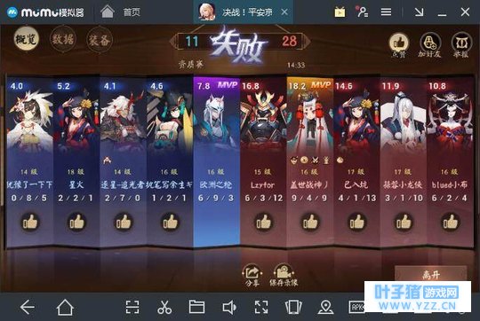 最后小编这边自然是比赛失败了,而小编还意外的拿下了败者组的mvp。不过看看战绩,这几个队友的实力确实感人。小编这第一次玩的妖狐,都能比这些队友打的好,只能说换个游戏坑货依然很多。