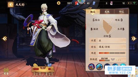 3、大天狗 大天狗是目前很强势的英雄,每个技能的伤害都很高,控制也给力。同样他也有2个被动技能,一个是技能命中敌方式神会有印记叠加,当印记叠到3曾会对目标造成伤害和减速效果。另一个被动,是增加法强和提供护盾。一技能是向前方发射羽矢造成伤害,二技能算是个锁定式的技能,对敌人造成伤害和击飞。大招则是一个,会移动的AOE风暴,对目标造成伤害和减速。大天狗到了6级,基本上是能一套秒人的。