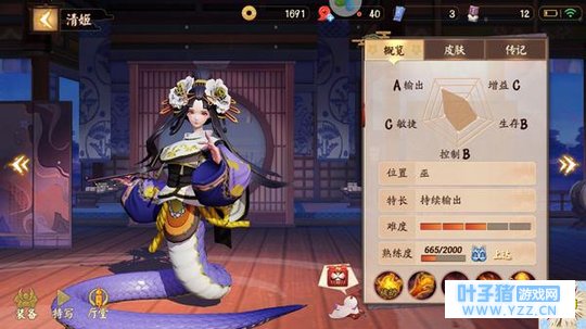 4、清姬 清姬是今天重点推荐的中路英雄,她在一级时候就可以对敌人进行压制了。清姬有一个被动,她的技能会对目标造成额外的持续性伤害。一技能会对敌人持续性造成伤害和减速效果,是AOE的。二技能是链子,单独释放没多大伤害,是要配合三技能使用的,会有吸血效果。三技能的距离很远,会对敌人造成伤害,而且也是清姬的主要输出技能。所以使者建议一级时候点三技能,而且主加三技能。这个技能CD短伤害高,对线很强势。大招是一个强化的效果,增加移速并且有50%减免控制效果,尤其会增强三技能,可以同时发出2颗子弹。玩清姬一定不能怂,肯定能拿到优势。