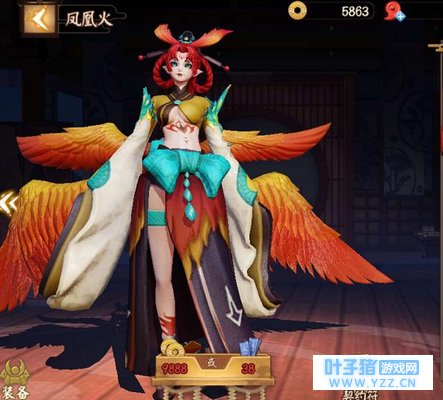 五、凤凰火 讲真,新式神凤凰火的腿是真的长,但是Aggro君总觉得这套羽毛装看起来有点村的感觉,好吧,只能让你屈居第五了。