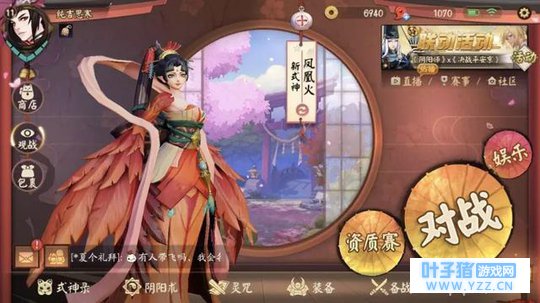 低多边形建模让角色的质感和手办很接近,降低了真实度,提高了平安京世界的代入感 游戏的UI也延续了《阴阳师》的拟物设计风格,《阴阳师》中主界面以庭院呈现,将各种功能按钮都隐藏在游戏的背景中,算是一个标志性的设计。在《决战!平安京》里,主界面则被设计成了一个日式风格的房间,从窗口里能隐约看到庭院,几个主要按钮也被设计成了油纸伞的形状。