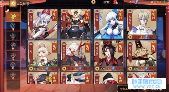 这里的式神分类也是五种,对应的分别是: 侍:战士、巫:法师、射:射手、忍:刺客、守:坦克、祝:辅助。