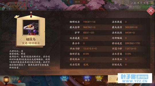 出装其实是我写攻略最头疼的部分 因为每个式神根据每一局的局势不同,出的装备应该都是灵活搭配的 在这里我只能先分享两套我自己的出装 套装一:咕——用于常规对局,对方如果肉相对较少,或者我方有团战能扛得住的式神在,这套能尽可能让姑获鸟输出最大化,而且姑获鸟被动技能的吸血,加上奉神朽骨的吸血效果,能确保姑获鸟在输出的同时,自身血量能及时回复 套装二:咕咕—— 这套和第一套的区别在于把奉神朽骨换成了三日月,如果对面肉比较多,三日月+鬼刃的组合让姑获鸟后期的输出能确实砍出伤害 经提醒,三日月和鬼刃都是网切效果无法叠加,如果要增加血量的话可以考虑三日月,二选一即可,另一个空出来的装备可以视情况换成天丛云或是袭色(如果对面法系伤害太高的话) 至于出装顺序,我个人是先打野到升级到猎龙金刀,然后买鞋子,优先出森罗,如果把打野刀升到顶再出其他装备,节奏会太慢 在我个人看来,姑获鸟的装备里,森罗+极心两件套是核心装备,这两套有了之后,姑获鸟的伤害能达到一个比较可观的程度 五. 个人感想 对于我而言,打野位开局的作用在于快速获取等级&资源,然后视情况去中路或者下路抓两波 哪怕没有人头进账,只要能逼出对方交瞬步,在我看来这次gank就成功了,因为在没有瞬步的情况下,对方是不太会选择贸然压线的。这样等同于为我方的线上创造了争取资源的机会 打野位不能闷头刷野怪,千万不能单机,也不能过于心急地想着gank就一定要拿人头,在我看来这种观点是不适合打野的 打野就要如同潜伏在暗影处的猎豹一样,伺机而动,只要让敌方产生一种你会无时无刻不在附近埋伏的感觉,那么我方在线上的优势就会慢慢打开 当然,如果前期你能很顺利的在中下路gank到人头,那么只要不犯傻,节奏保持好,优势就会滚雪球一样越来越大 至于我为什么不提到去上路gank,因为我个人认为上路是抗压位,而且往往都是皮糙肉厚的式神在上路,gank的效果不大,所以我会更倾向gank中下路 姑获鸟是一个集机动性和输出于一身的式神,只要熟悉技能,找准时机,可以说姑获鸟能有很不错的表现,MVP也是可以信手拈来的好吗 玩姑获鸟切记不要硬刚,不要第一时间切近团战去送死,耐心点找准时间,直接切入地方后排输出一套,是可以很好打乱地方输出节奏的 姑获鸟是可以通过一技能+二技能的组合打出poke,从而让对方无法近身而又逃不掉 至于少允以上级别,因为有了迷雾,目前我还不能下太多的定义,但是姑获鸟的机动性或许可以在反野上起到一定的作用 最后,希望大家都能顺利上分,也期待大家能抛出更多关于姑获鸟的讨论 |
