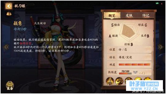 妖刀姬在《决战!平安京》中是作为侍和忍双职业的式神,活跃在打野和上单两个位置,都有着不错的表现,妖刀姬不同于其他式神的是他的伤害和技巧在于技能的衔接,如果是发育好的妖刀姬一套完美的技能衔接,对面基本非死即残,而且妖刀姬还能全身而退,如果想打出完美的技能衔接,首先我们要对妖刀姬的技能使用相当熟悉。下面便是小编对妖刀姬技能的理解,希望可以帮到大家。