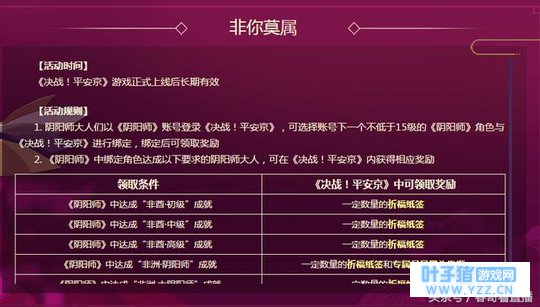 其次,《决战!平安京》继承了阴阳师的画风和精致的式神建模,第一批的联动活动就送皮肤送式神还送祈福纸签……
