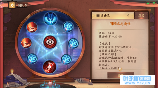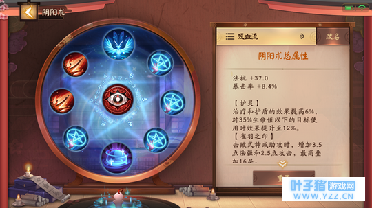 防御装备以护甲为主,故阴阳术中选用法术抵抗。暴击流选暴击伤害,吸血流选暴击概率;前者增加输出无可厚非,后者的暴击概率与【千鸟双月】的暴击率叠加,比选用攻击力要好。【护灵】能提升吸血值,【破灭】加强终结力度。打野可把【雀羽之印】换成【点金星尘】,上单可换成【巫女祷言】;前者加快装备成型,提高gank效率。后者减少瞬步、传送等的冷却时间。【秘术豹眼】增加移动速度很贴合犬神的输出模式。