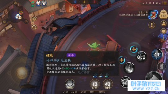 这是一个状态技能,在使用该技能后,灯姐会进入蝶影状态,接下来的每一次普通消耗12%的最大法力值,并对目标及其周围敌人造成法术伤害!再一次使用后,退出蝶影状态。 这个技能算是灯姐的核心技能,其绝大多数伤害都是来源于此。不过因为这个技能比较耗蓝,遇到辉夜姬的时候需要多注意一下,毕竟那丫头打蓝打的有些凶残,万一团战没蓝,那就尴尬了!