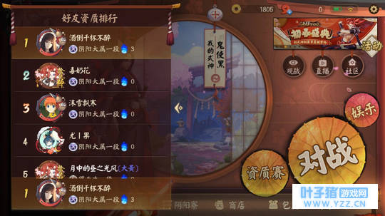 在周五更新后,游戏主界面有了很大的变动。 原先的阴阳术、灵咒、装备按钮都融合进了备战按钮中,商店包裹按钮移到了主界面下方,观战直播社区按钮移动到了活动界面下方。同时,在屏幕的左侧还增加了好友资质排行榜,头像、头像框一览无余。 排行榜可以点开,玩家可以详细的看到好友们详细的段位。