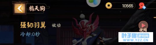 羽清最为鸦天狗的被动技能可以说是非常强势了,也是鸦天狗前期可以和敌人对拼的主力输出。对300码范围内对敌人造成0.5%最大生命值的真实伤害可以说不怕任何打不动的式神,尤其是还是成长技能,更加的恐怖,不过容易被般若那样子的式神压住,毕竟攻击范围太近,但是依然很出众。 ●强韧羽翼