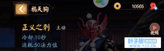 噩梦鸦袭是鸦天狗的第一个攻击技能,首先技能基础伤害在平安京中算是比较高的,拥有极其强大的消耗能力。其次是直线技能,可以穿透小兵以及式神,范围和二口女的第一个技能范围差不多,在击中目标后会造成110(+90%的普通攻击)的物理伤害。而且追击对手的时候利用这个技能还可以造成40%的减速效果,持续3秒。其实这个技能的伤害使鸦天狗完全可以走纯输出的路线,但是为了配合被动效果以及大招的伤害,鸦天狗只能走肉或者半攻半肉的路线。 ●正义之刺