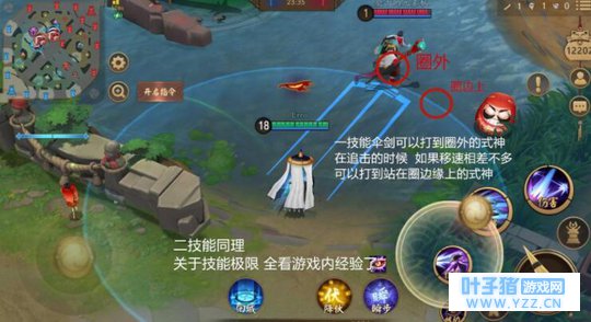 决战平安京姑荻鸟二技能:指向型技能,命中敌方式神后会对其造成伤害并减速,并且附带普攻效果。该技能不会被敌方小兵或野怪阻断。只要距离把握好,弹道命中率极高,后面我会对技能范围进行详细的解释。