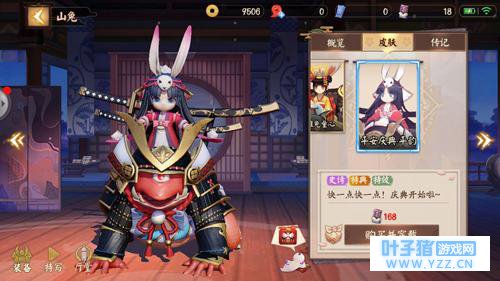 山兔:平安庆典平韵 同样都是平安庆典一系列的皮肤,山兔的这款皮肤虽然是有点偏向武士风格,但是意外的配色还真的挺不错的可能是因为游戏不同的原因,决战平安京的山兔本体要比青蛙大的多。