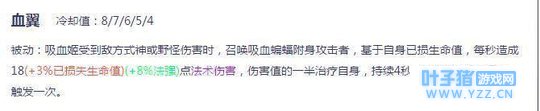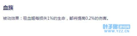 决战平安京吸血姬天生被动:此被动属于吸血姬输出增幅技能,掉血加伤害,血量越少伤害越高。此技主要契合于一技能血翼。